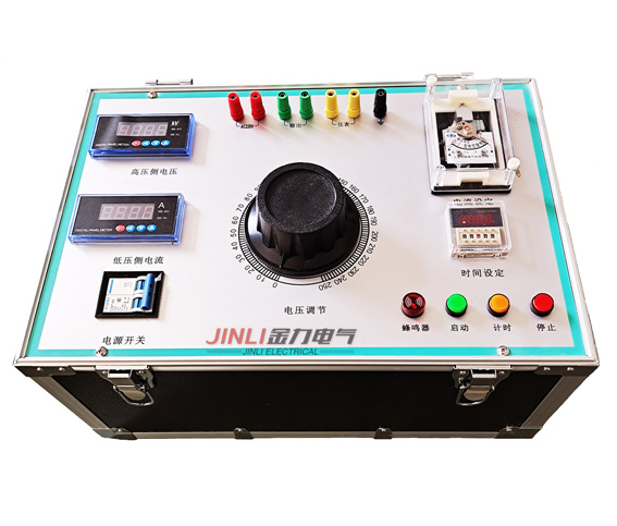 5、試驗中,如果試品短路或故障擊穿,試驗變壓器控制箱中的過流繼電器工作,此時,將調壓器回至零位,并切斷電源后,方可將試品取出。